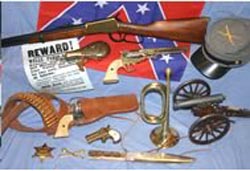 Welcome, this Category is like going to another website with such a huge Collection of Replica Weapons, Collectibles and gifts of most anything imaginable and some things previously unimaginable. You will have a lot of fun in here. Just look at those interesting categories and subcategories below! Our Collection of replica weapons for sale online are Reproduction and fake guns and swords for gifts, display, memorabilia, reenactment equipment and accessories, museum quality replica weapons, stage, movie, video and artists props, parades and weapons training scenarios and many other uses. We have replica metal swords, some battle worthy swords. We have non firing, blank firing guns, cap guns, old west or western guns, bowie knifes and swords, civil war swords, pistols, rifles and long guns, Colonial and revolutionary war flintlock pistols and rifles, Resin WWI, WWII and other military rifles and hand guns, WWII Collectibles, pirate guns and swords, medieval weapons including swords, catapult and guillotine miniatures, non firing cannon displays. This is the best source to buy replica weapons, Collectibles and gifts online.